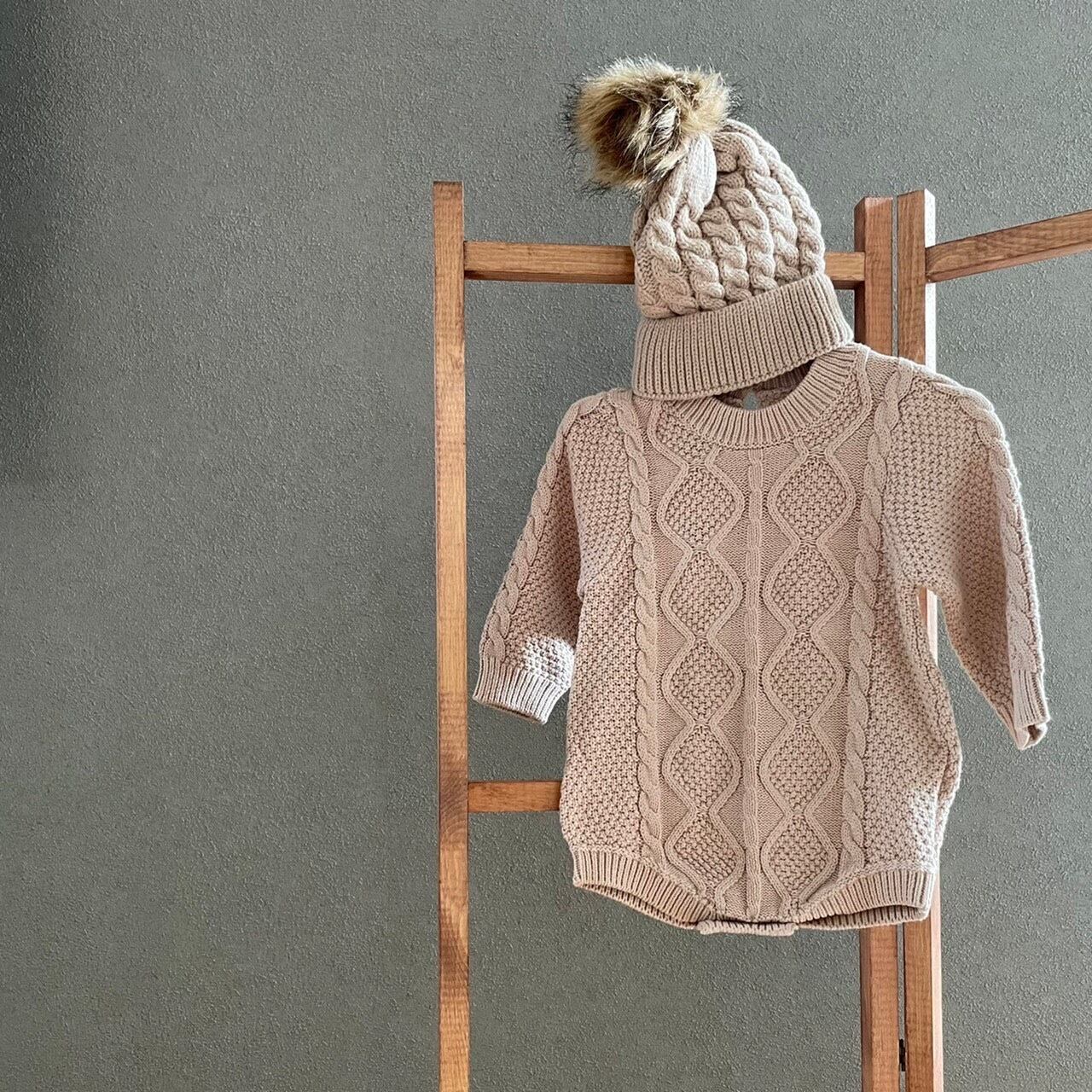 【SALE 499円】ぽんぽんケーブル編みニット帽